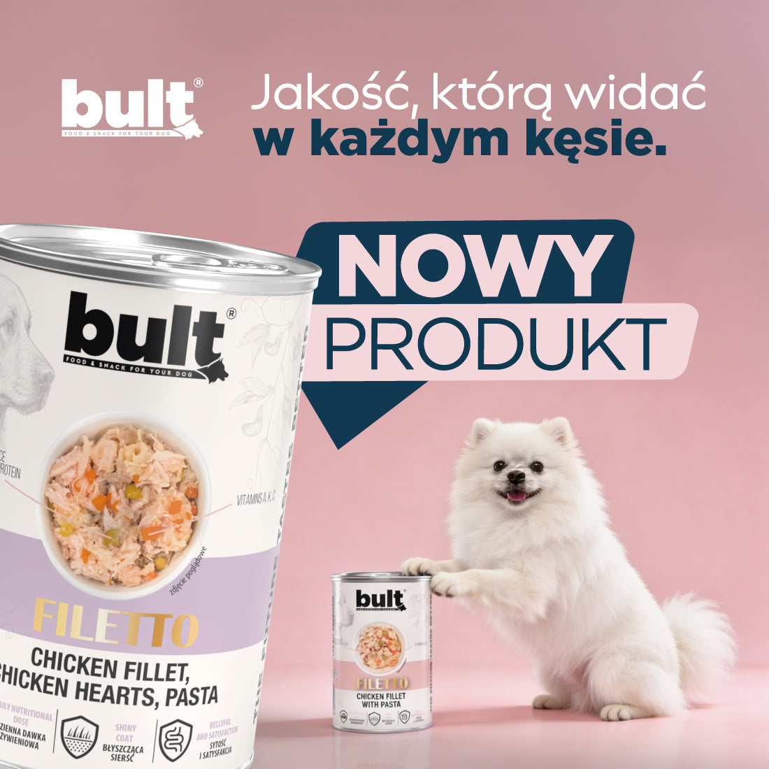BULTI to pełnowartościowa karma dla kotów oparta na naturalnych składnikach i prostych recepturach. Bez sztucznych dodatków i zbędnych wypełniaczy, za to z dużą ilością mięsa, które dostarcza białka potrzebnego do zdrowego rozwoju. Nasze produkty powstają w Polsce z dbałością o jakość i smak, który pokocha Twój kot. Dzięki BULTI codzienny posiłek staje się chwilą radości i źródłem energii na cały dzień.