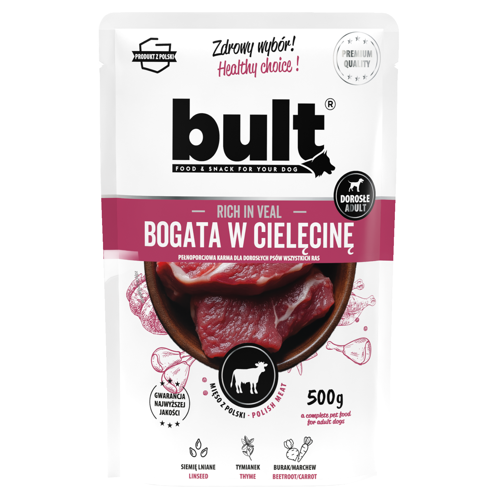 BULT „Bohatá na telecí maso“ je kompletní mokrá strava pro dospělé psy všech plemen, vytvořená pro majitele, kteří chtějí zpestřit každodenní krmení psa jemným, ale výrazným zdrojem masa, při zachování jednoduchého a stabilního složení.