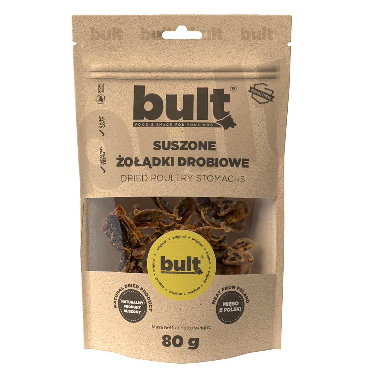 Chrupiące i aromatyczne kąski z żołądków drobiowych. Doskonałe jako przekąska między posiłkami lub nagroda treningowa. Wysoka zawartość białka wspiera regenerację mięśni.