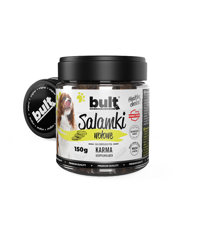 Váš pes si zaslouží chuť, která spojuje sílu přírody s péčí o zdraví. Hovězí salámy BULT jsou snadno stravitelné pamlsky, které poskytují cenné živiny a podporují každodenní tělesné funkce. Ideální pro psy všech věkových kategorií – jako odměna i jako doplněk stravy.