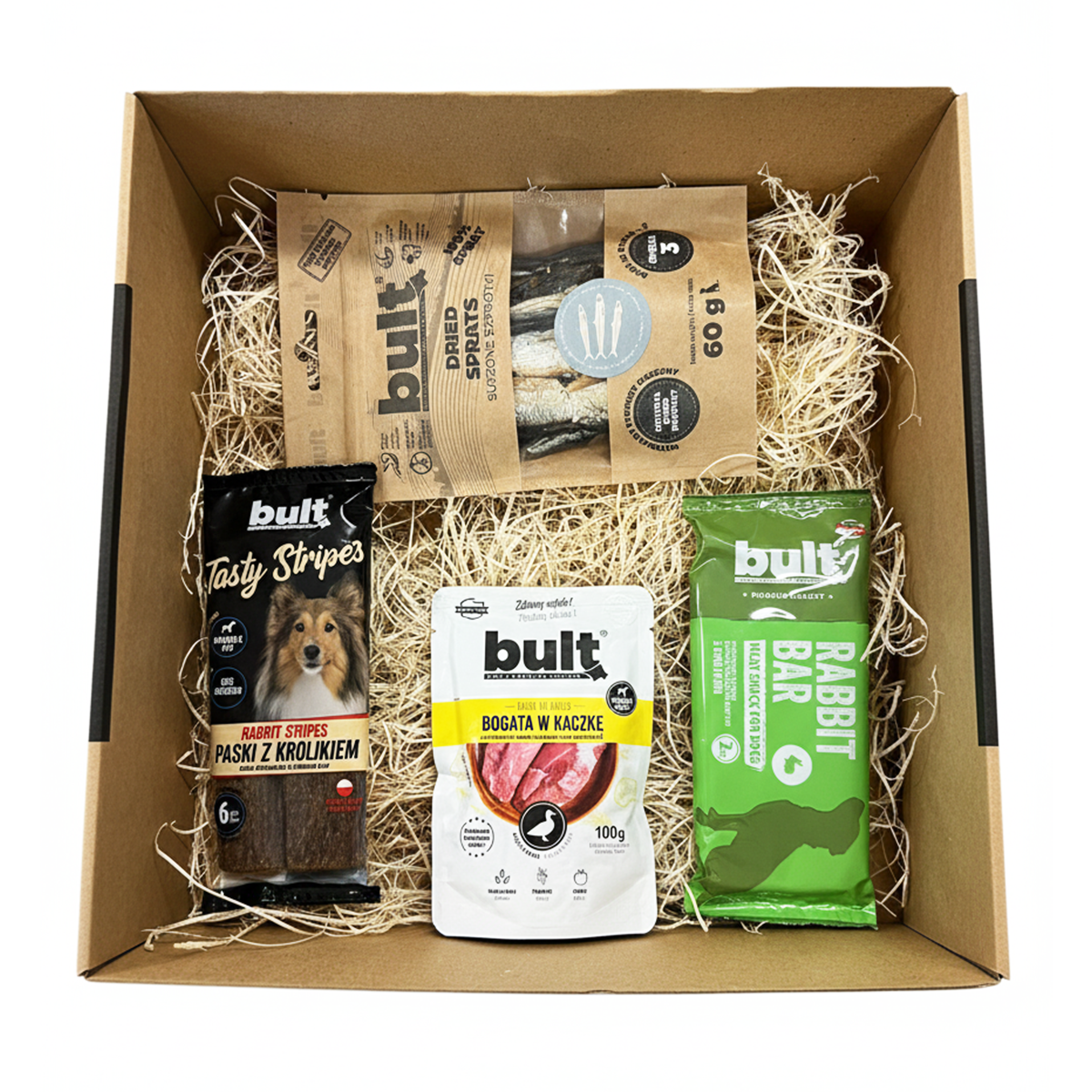 BULT Rabbit Bar - batonik proteinowy z królikiem dla psa: Mięso i produkty pochodzenia zwierzęcego 86% (w tym 16% mięsa z królika), produkty pochodzenia roślinnego, gliceryna.