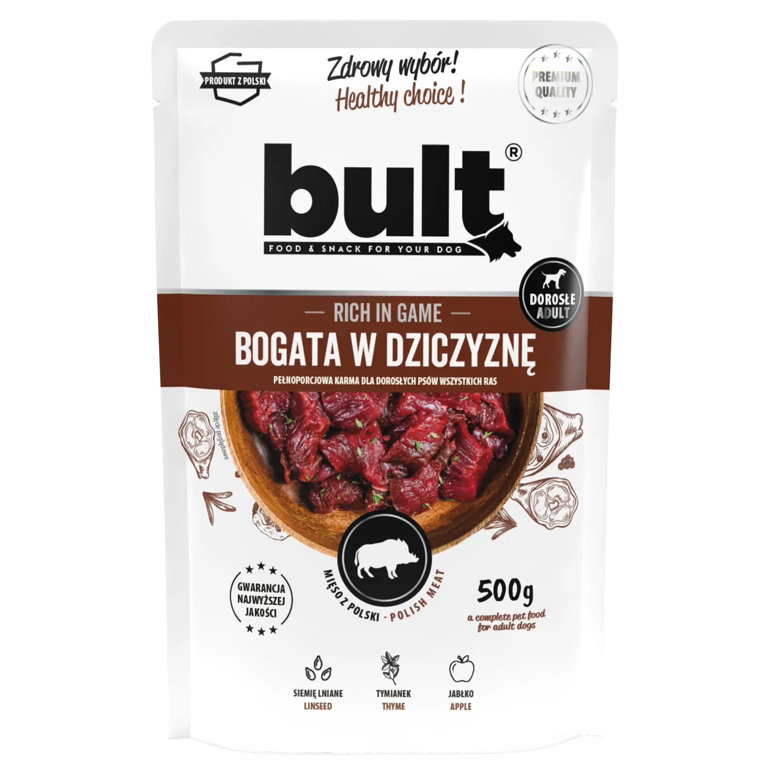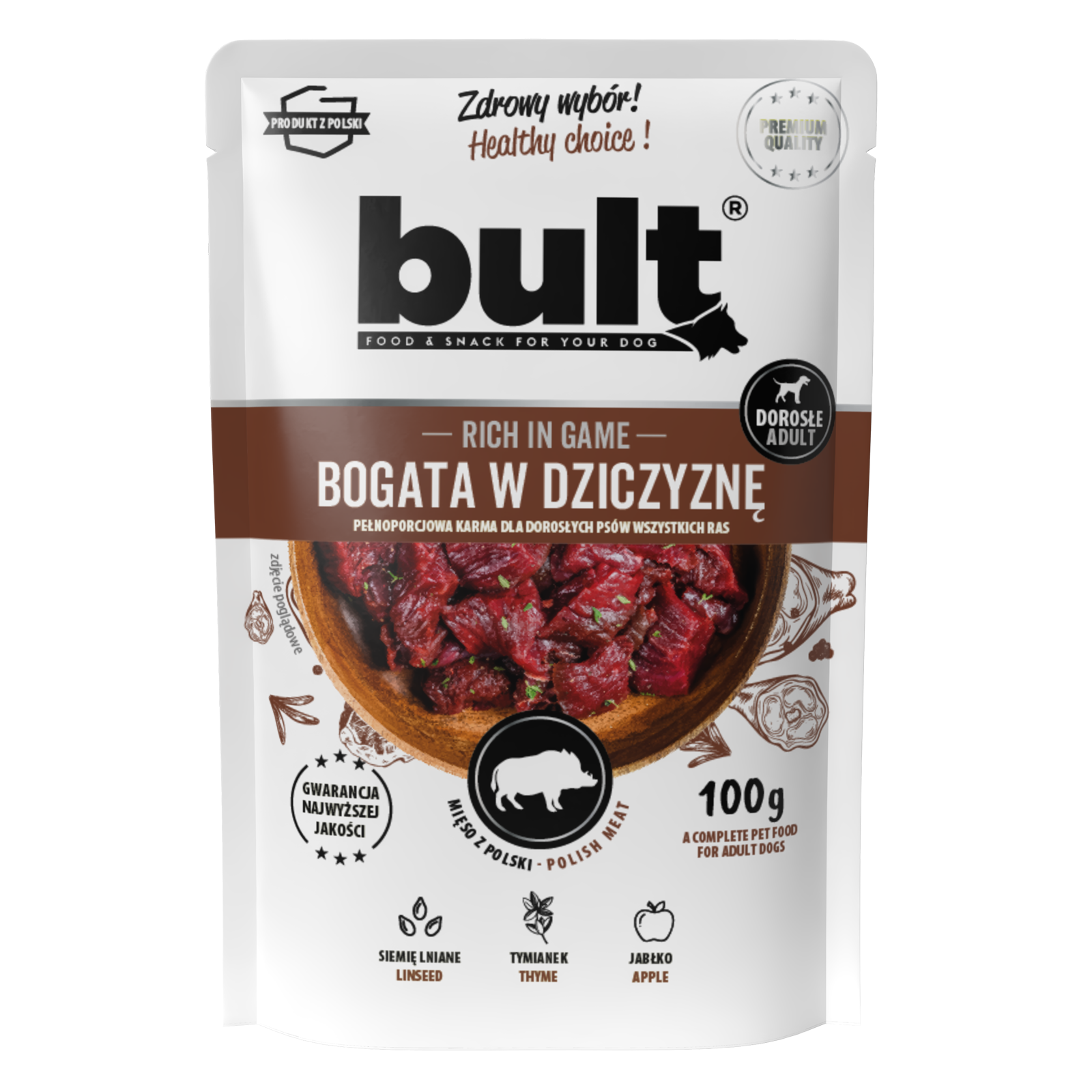 Saszetka mielonka bogata w dziczyznę – karma mokra pełnoporcjowa dla psa | BULT