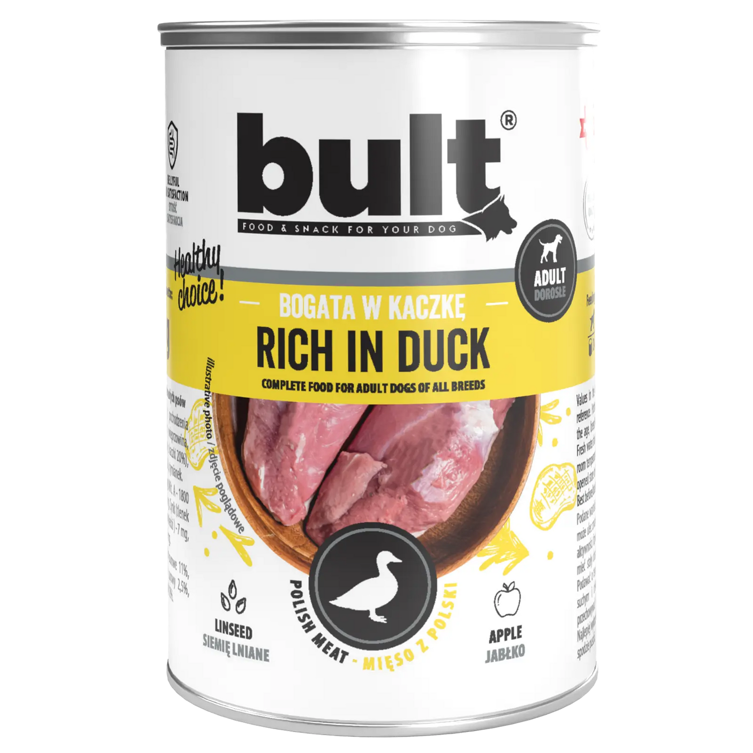 Puszka bogata w kaczkę – karma mokra pełnoporcjowa dla psa | BULT