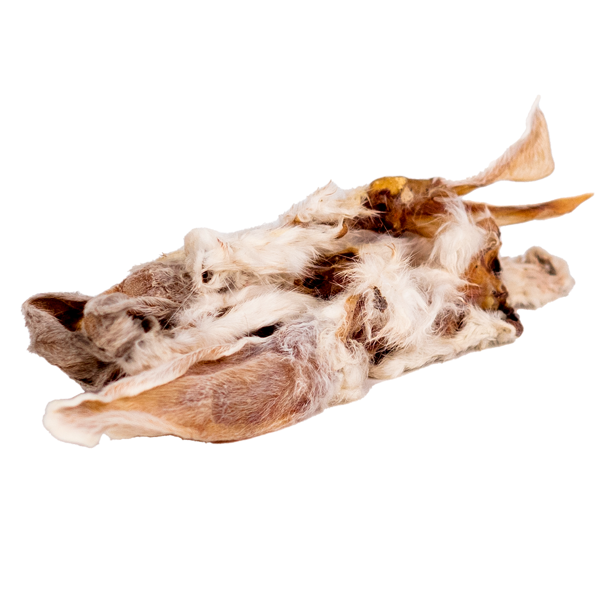 Proces suszenia odbywa się w sposób naturalny, bez użycia chemii, co gwarantuje czystość i jakość. Futro na uchu nie tylko dostarcza dodatkowych bodźców sensorycznych, ale też wspomaga mechaniczne oczyszczanie przewodu pokarmowego. Wysoka zawartość białka (60,5%) wspiera rozwój mięśni, a niska wilgotność (8%) zapewnia trwałość produktu.